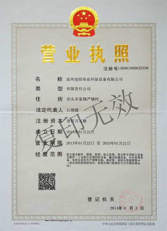 營業執照正本-滄州旭陽偉業環保設備有限公司